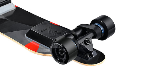 On MINI/S3/S3PRO/W3/W3PRO, UDITER uses the 8-inch trucks. It makes sure that it is safe to ride at high speeds while also making the skateboard more flexible. The UDITER EVO uses double kingpins trucks. It is wider and also has good flexibility. You can make a turn at a small angle.