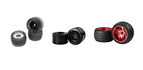 Pneumatic wheels are used in All-terrain/Off-road electric skateboards. This means a larger wheel diameter, better off-road performance, and constant maintenance because you need to inflate it regularly. If it wears out, the replacement costs will be high. The huge size also limits the usage in other places.