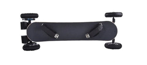 All-terrain/Off-road electric skateboard has wheels diameters typically bigger than 105mm. The deck is usually longer than 38 inches (100 cm) and uses a belt-driven motor.